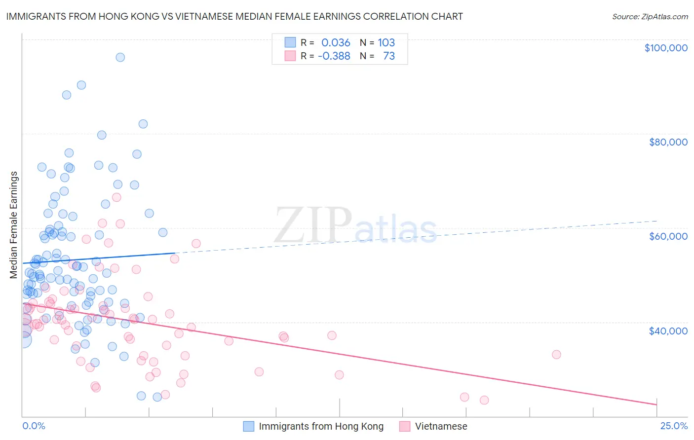 Immigrants from Hong Kong vs Vietnamese Median Female Earnings Correlation Chart
