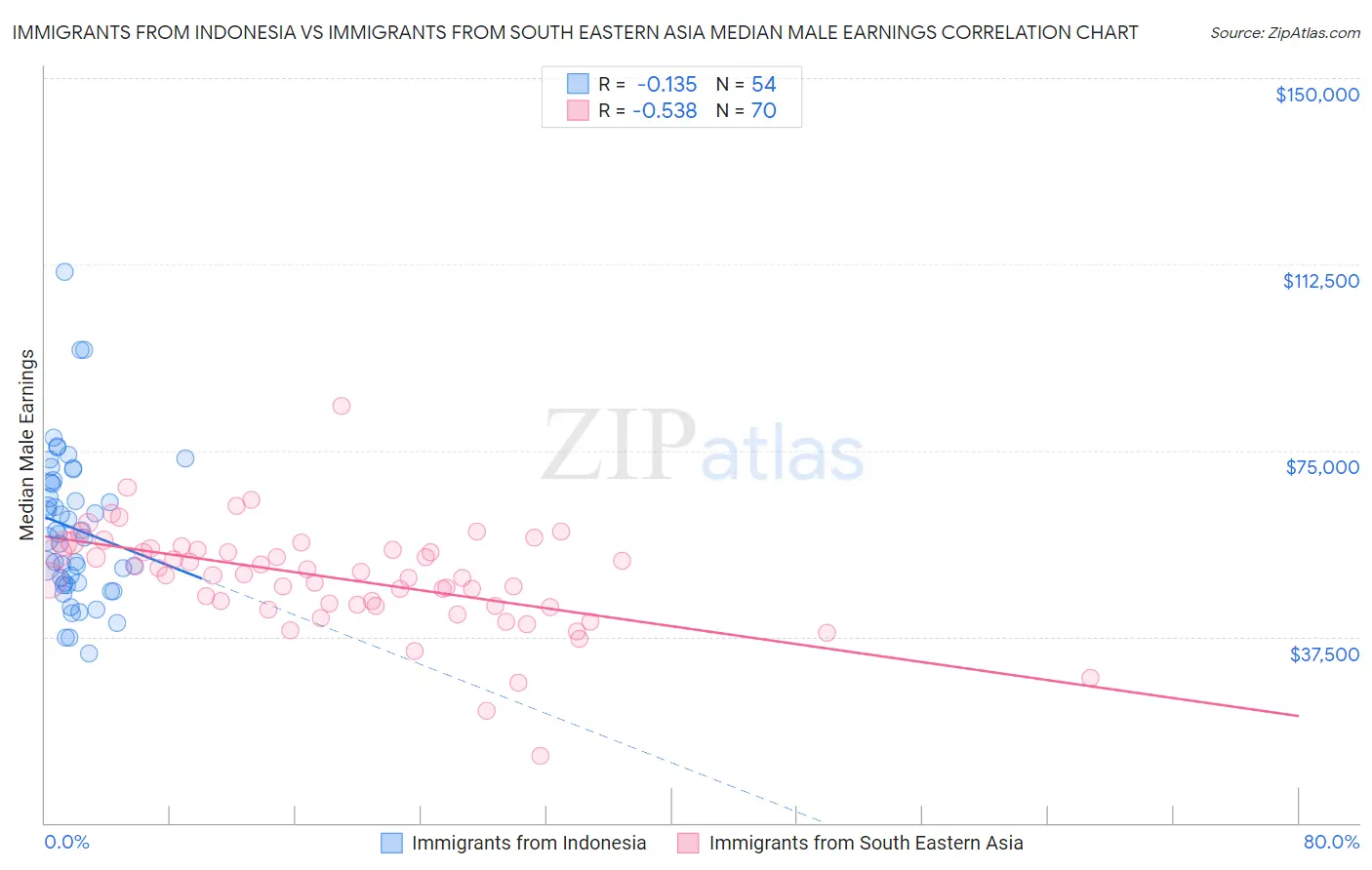 Immigrants from Indonesia vs Immigrants from South Eastern Asia Median Male Earnings Correlation Chart