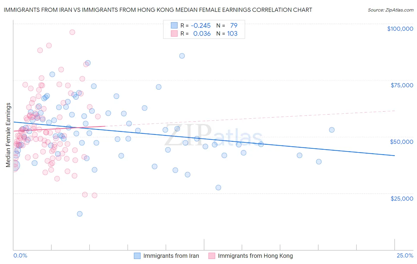 Immigrants from Iran vs Immigrants from Hong Kong Median Female Earnings Correlation Chart