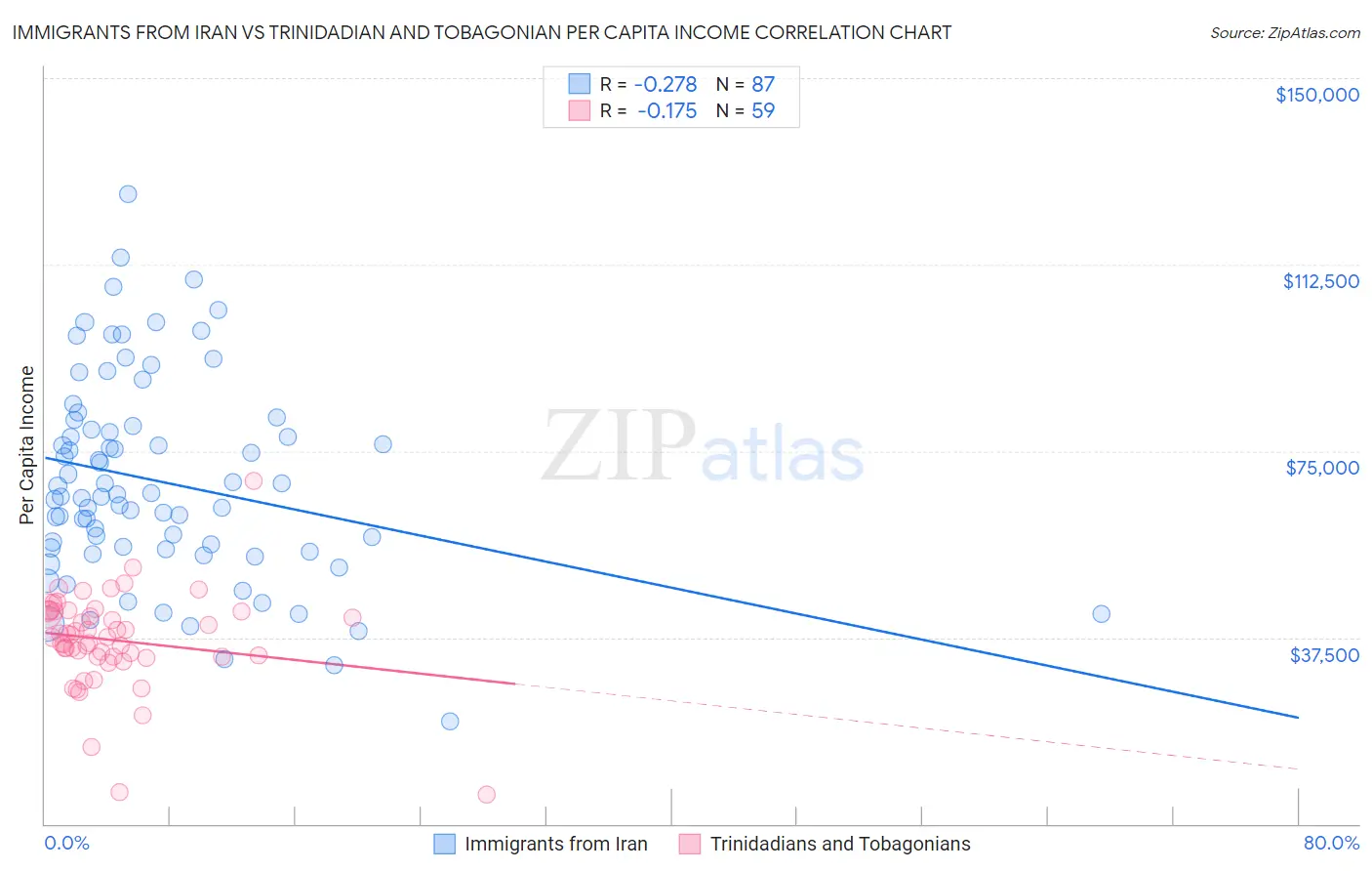 Immigrants from Iran vs Trinidadian and Tobagonian Per Capita Income Correlation Chart
