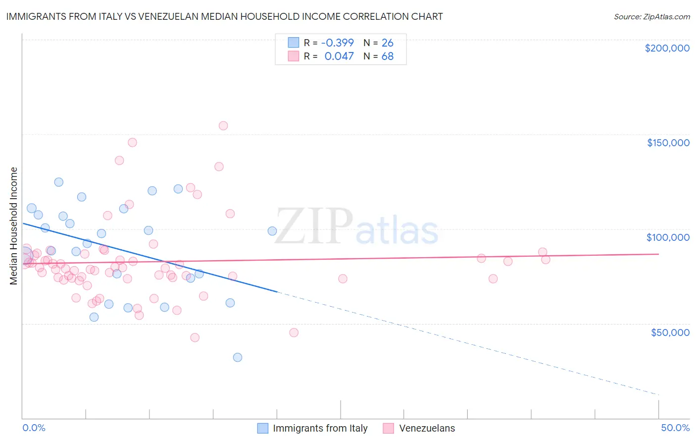 Immigrants from Italy vs Venezuelan Median Household Income Correlation Chart