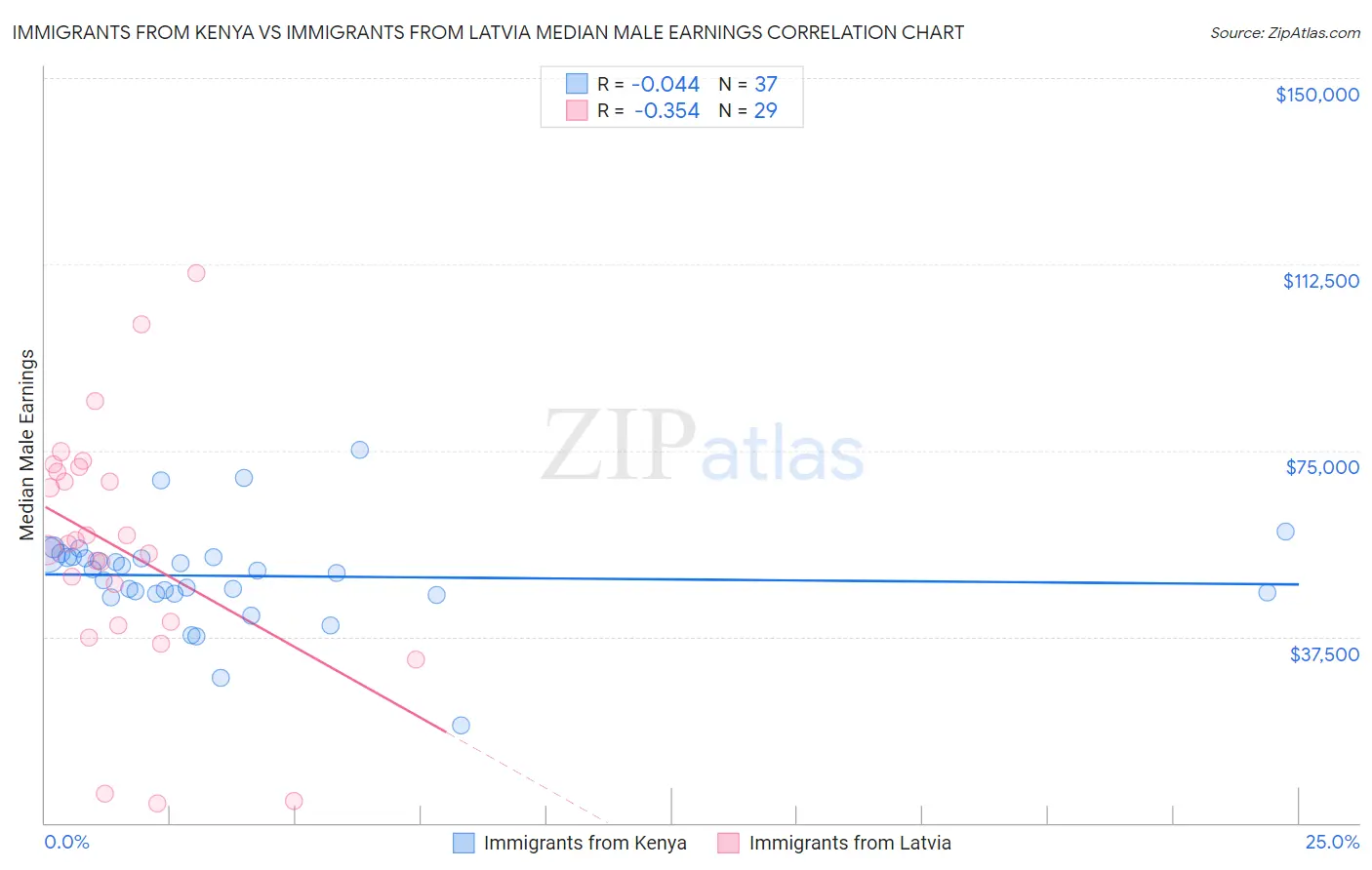 Immigrants from Kenya vs Immigrants from Latvia Median Male Earnings Correlation Chart