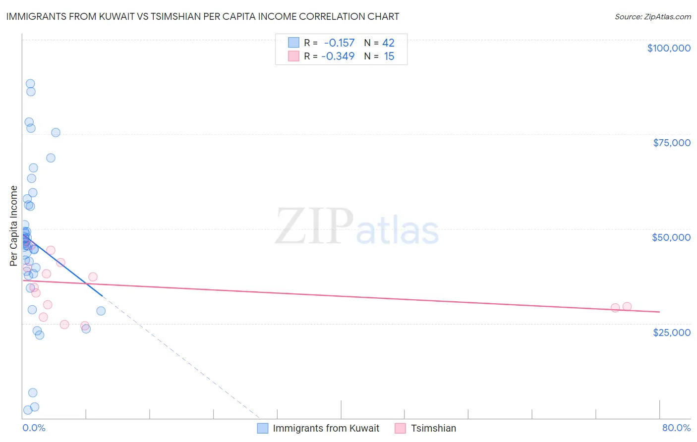 Immigrants from Kuwait vs Tsimshian Per Capita Income Correlation Chart