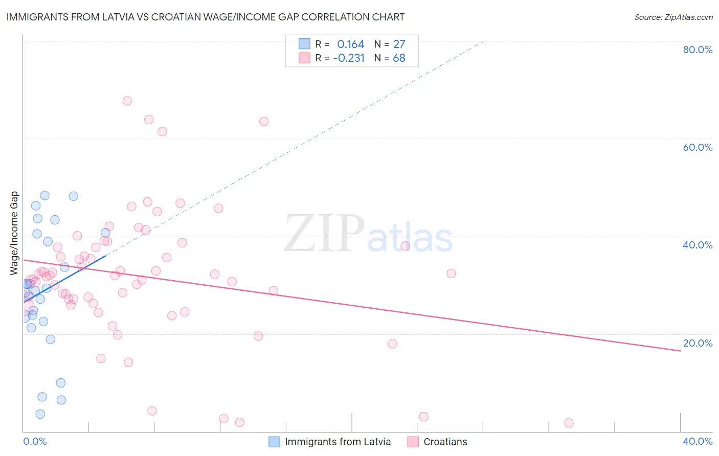 Immigrants from Latvia vs Croatian Wage/Income Gap Correlation Chart