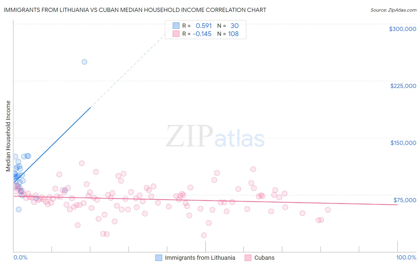 Immigrants from Lithuania vs Cuban Median Household Income Correlation Chart