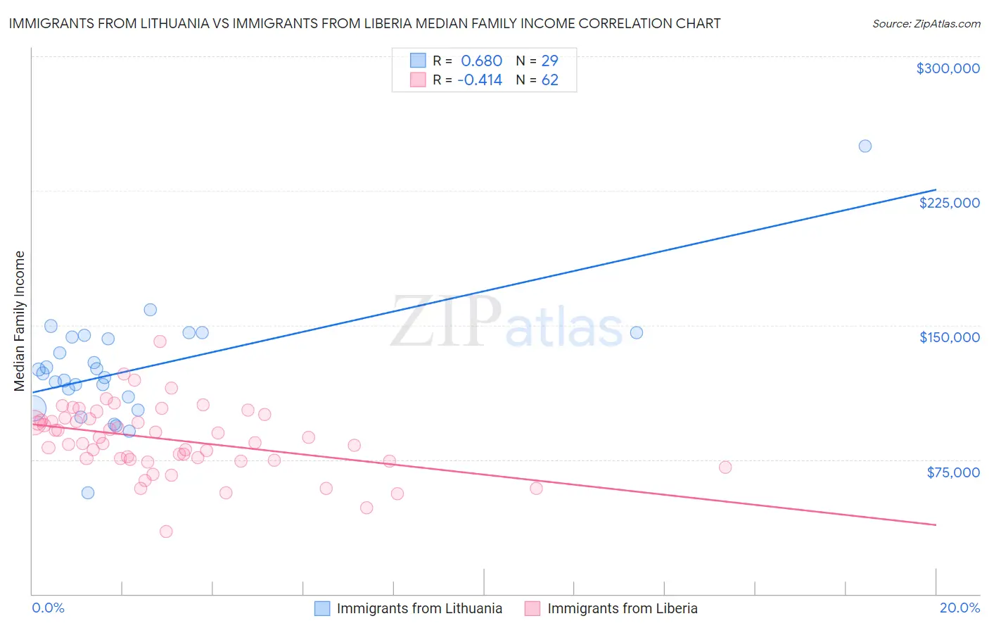 Immigrants from Lithuania vs Immigrants from Liberia Median Family Income Correlation Chart
