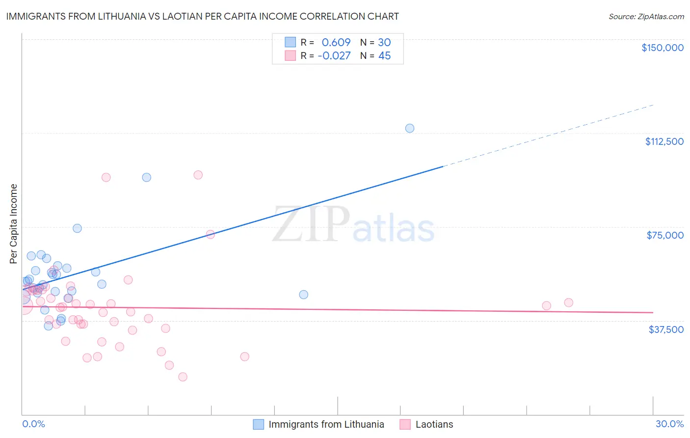 Immigrants from Lithuania vs Laotian Per Capita Income Correlation Chart