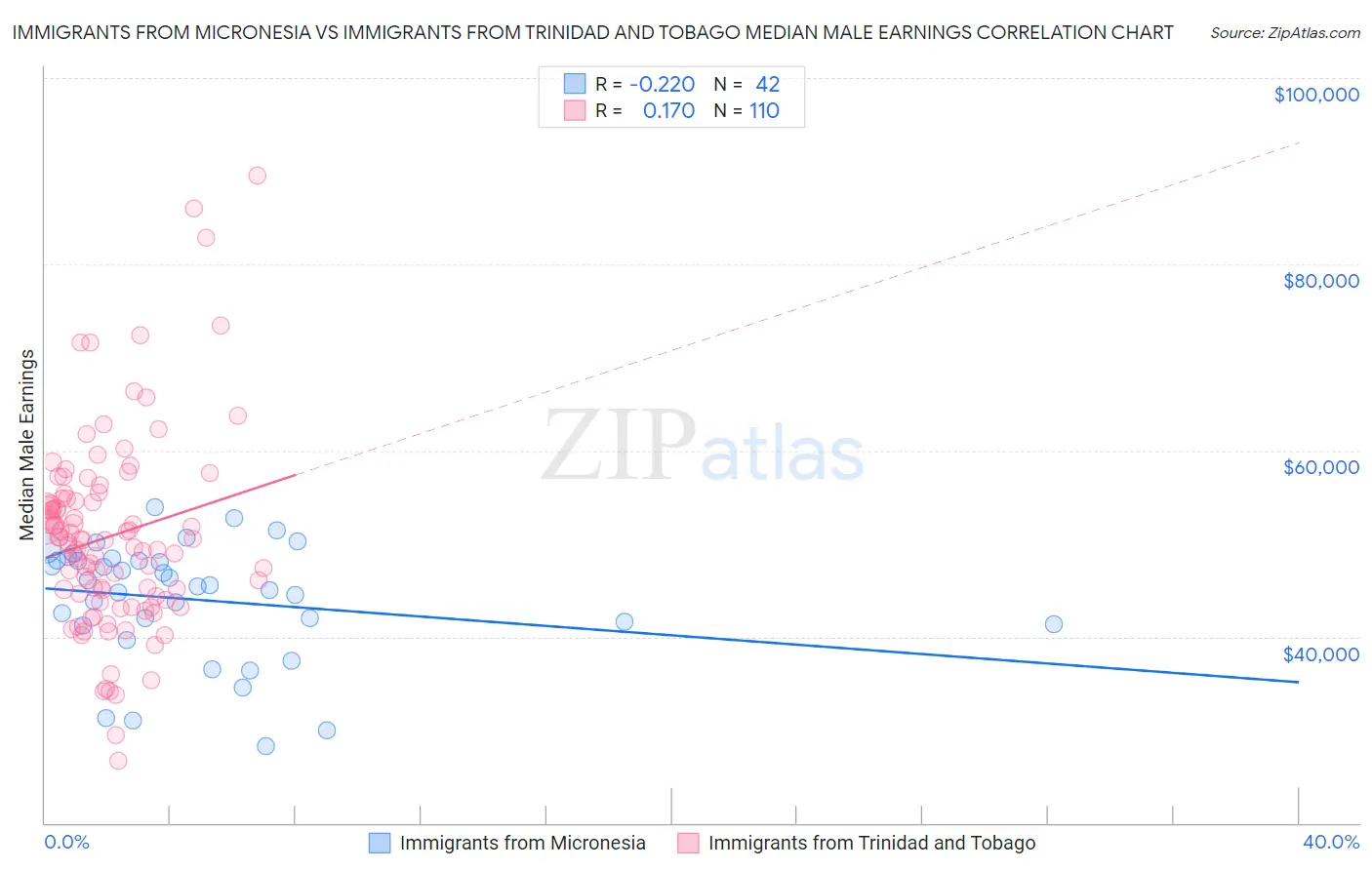Immigrants from Micronesia vs Immigrants from Trinidad and Tobago Median Male Earnings Correlation Chart
