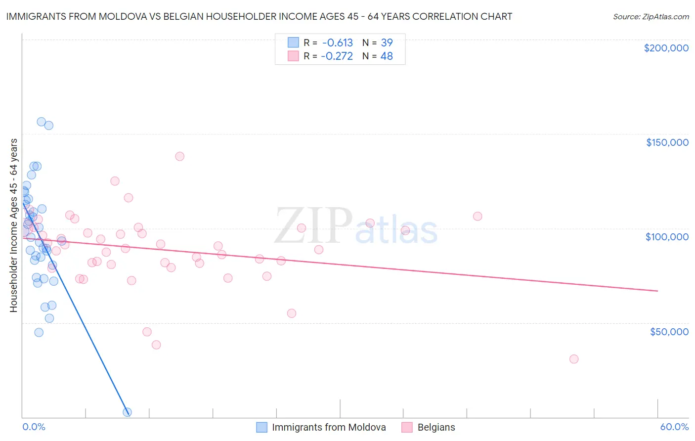 Immigrants from Moldova vs Belgian Householder Income Ages 45 - 64 years Correlation Chart