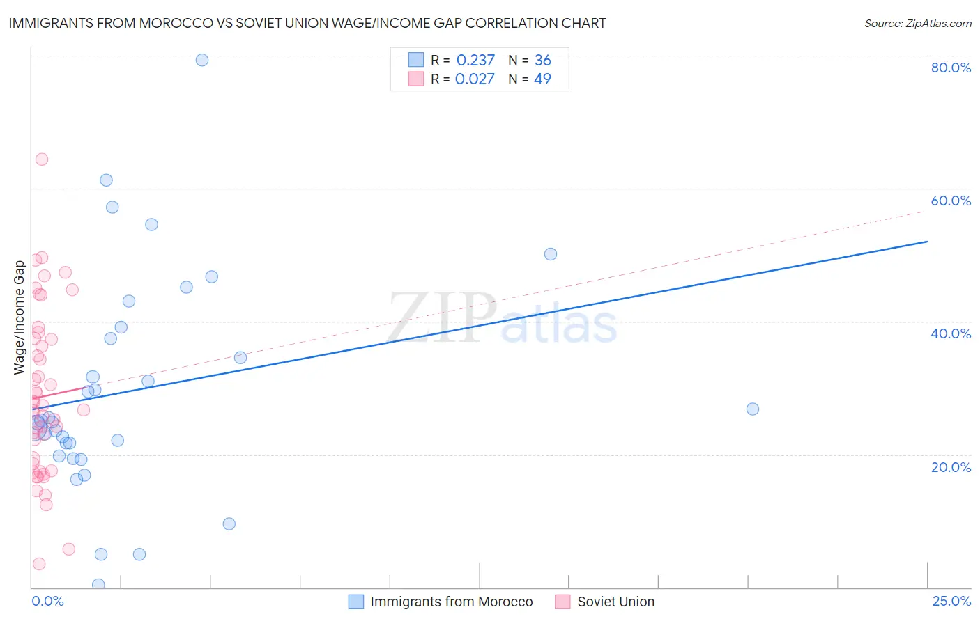 Immigrants from Morocco vs Soviet Union Wage/Income Gap Correlation Chart