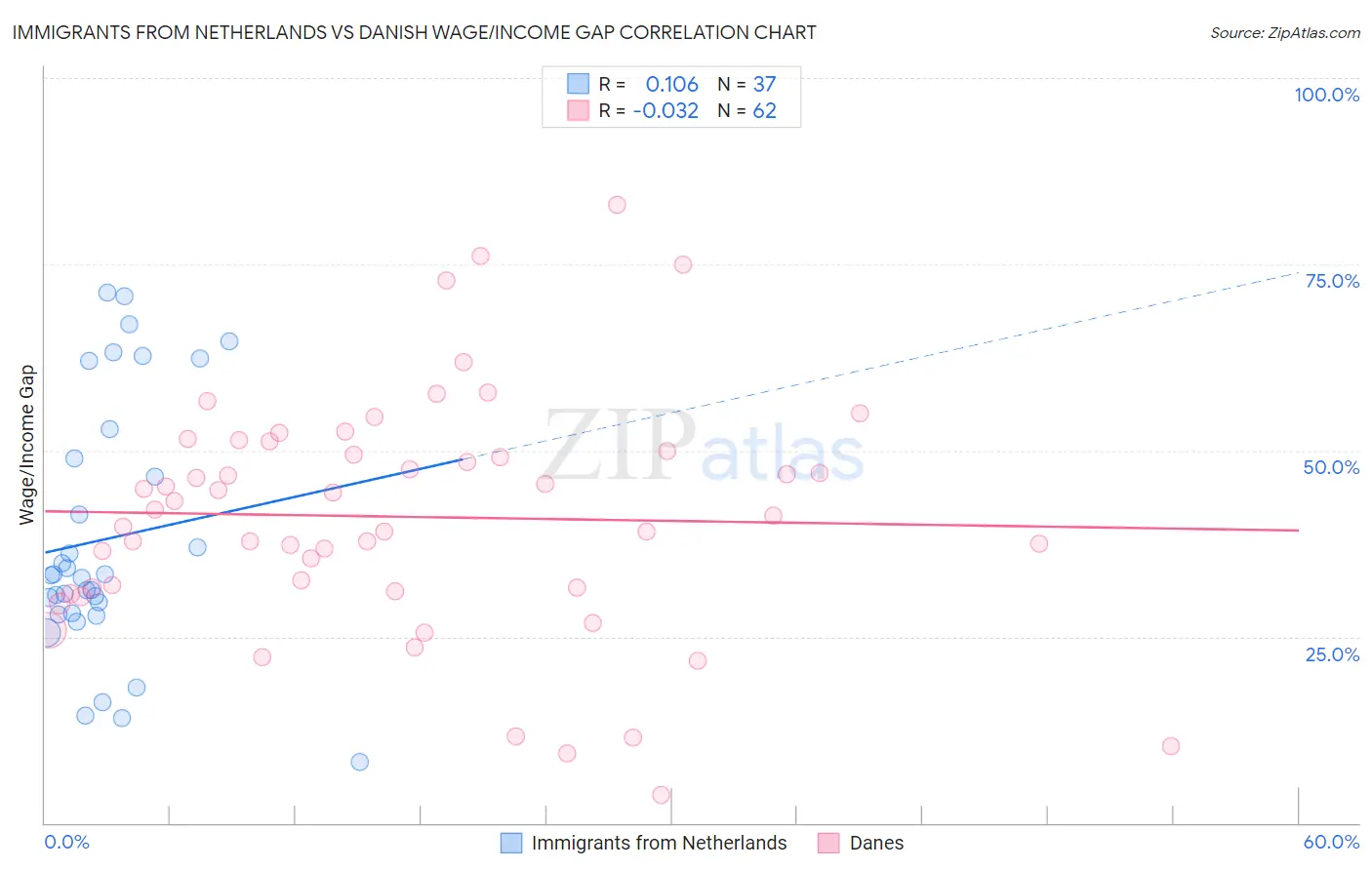 Immigrants from Netherlands vs Danish Wage/Income Gap Correlation Chart