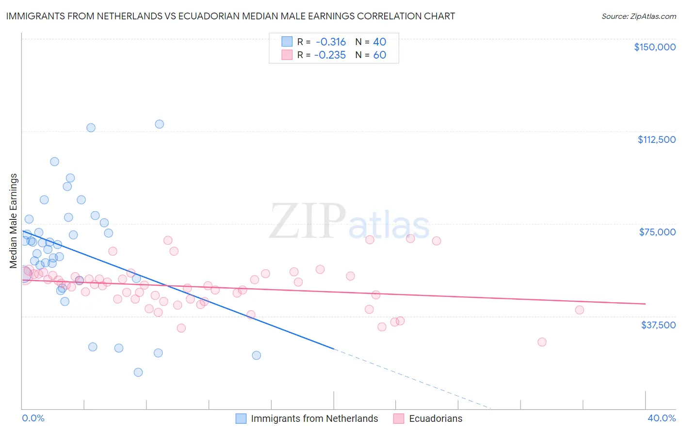 Immigrants from Netherlands vs Ecuadorian Median Male Earnings Correlation Chart