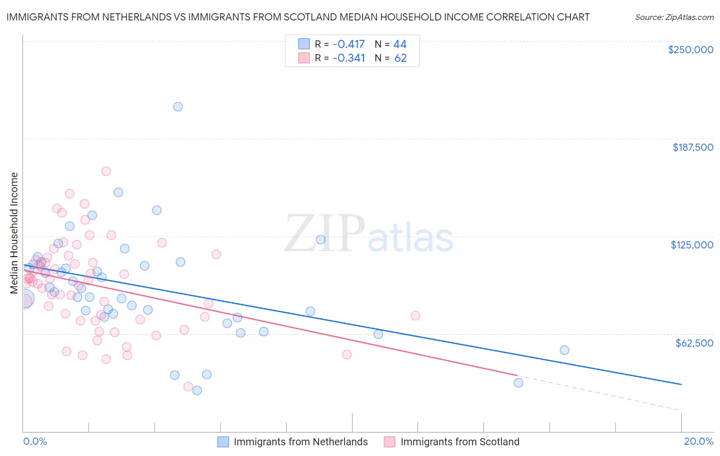 Immigrants from Netherlands vs Immigrants from Scotland Median Household Income Correlation Chart