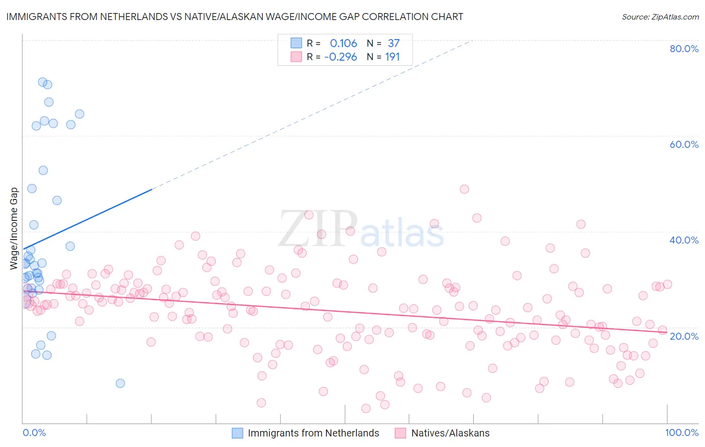 Immigrants from Netherlands vs Native/Alaskan Wage/Income Gap Correlation Chart
