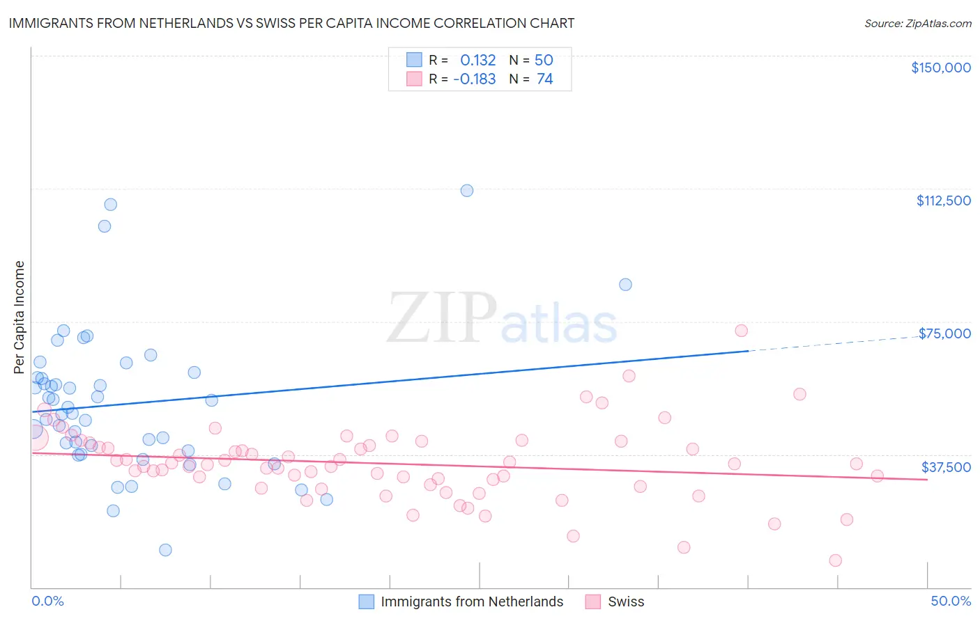 Immigrants from Netherlands vs Swiss Per Capita Income