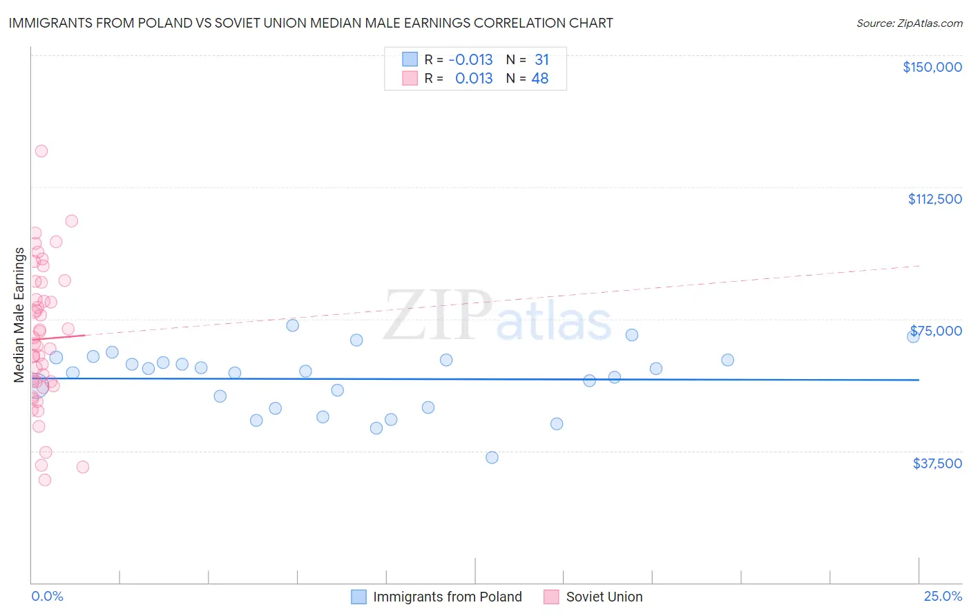 Immigrants from Poland vs Soviet Union Median Male Earnings Correlation Chart