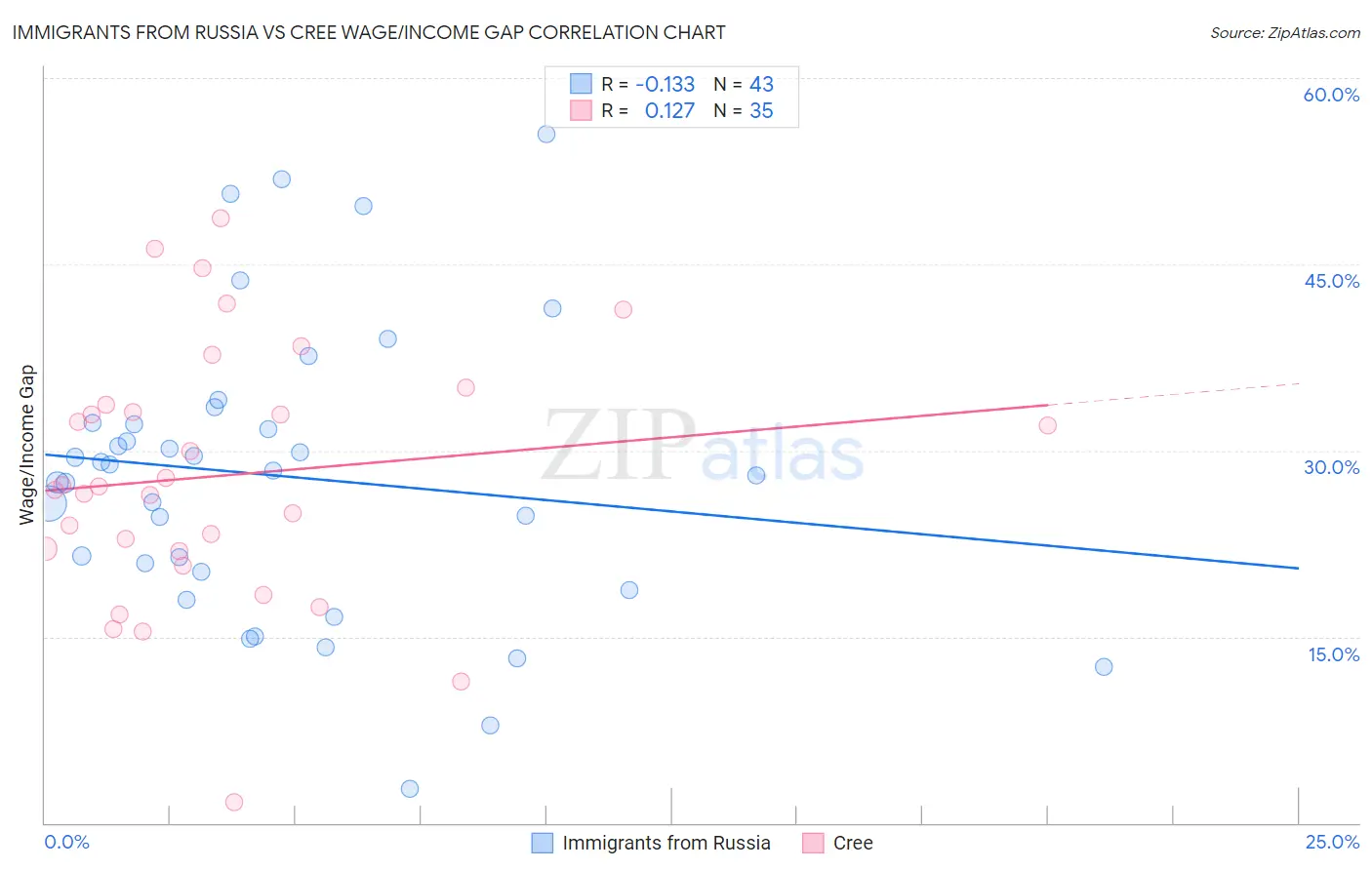 Immigrants from Russia vs Cree Wage/Income Gap Correlation Chart