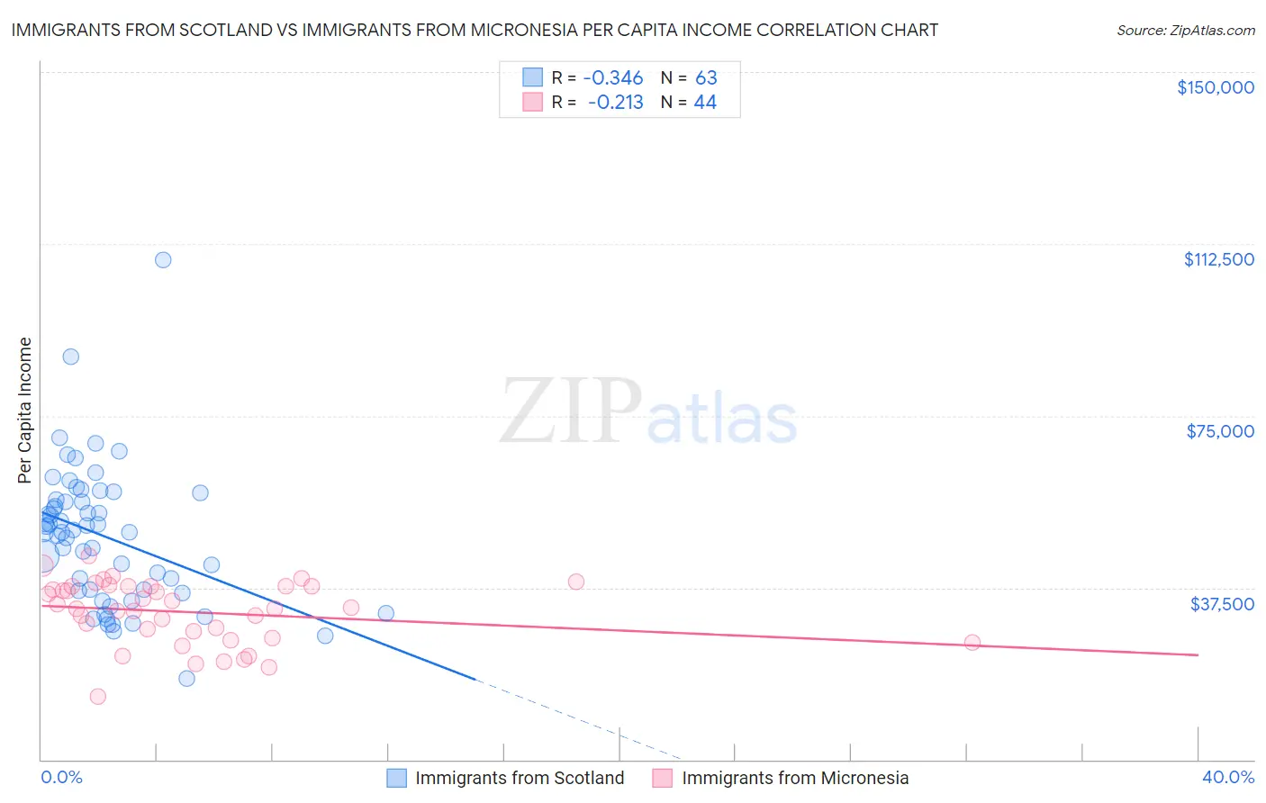Immigrants from Scotland vs Immigrants from Micronesia Per Capita Income