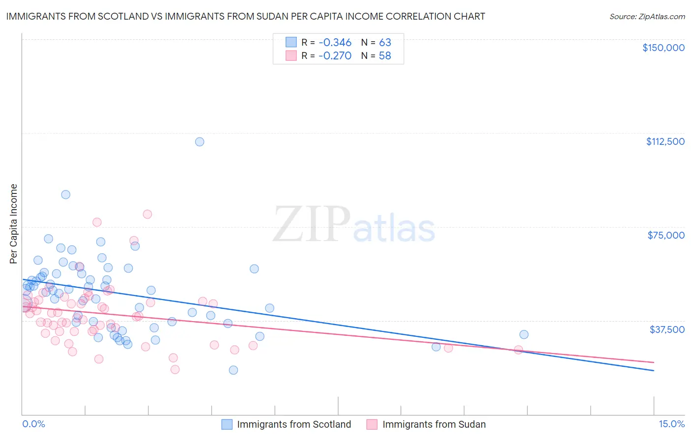 Immigrants from Scotland vs Immigrants from Sudan Per Capita Income Correlation Chart