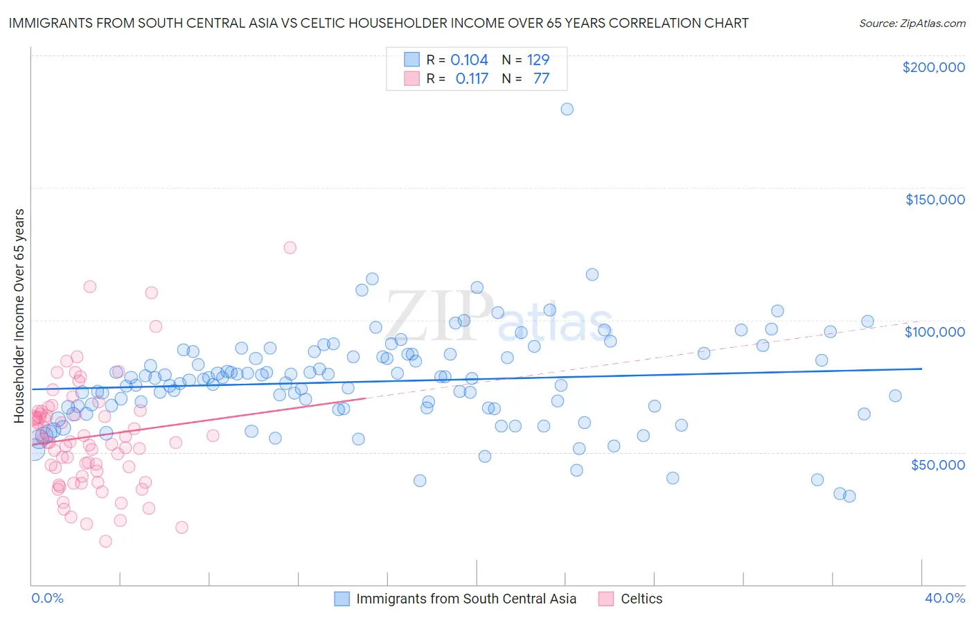 Immigrants from South Central Asia vs Celtic Householder Income Over 65 years Correlation Chart