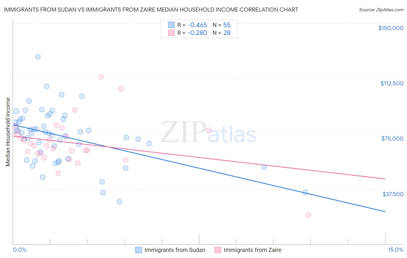 Immigrants from Sudan vs Immigrants from Zaire Median Household Income Correlation Chart