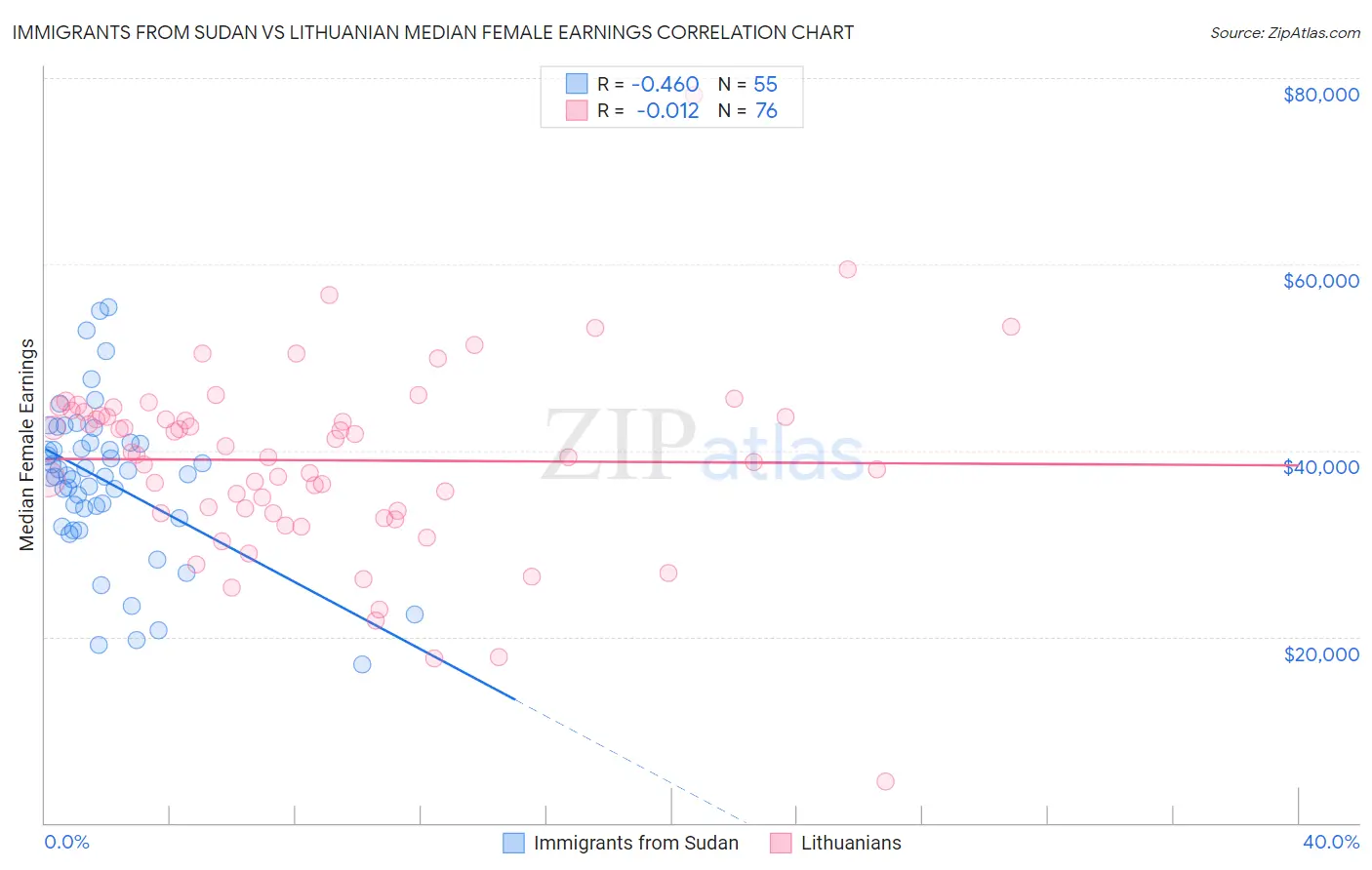 Immigrants from Sudan vs Lithuanian Median Female Earnings Correlation Chart