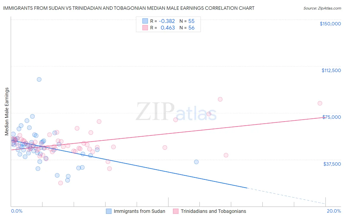 Immigrants from Sudan vs Trinidadian and Tobagonian Median Male Earnings Correlation Chart
