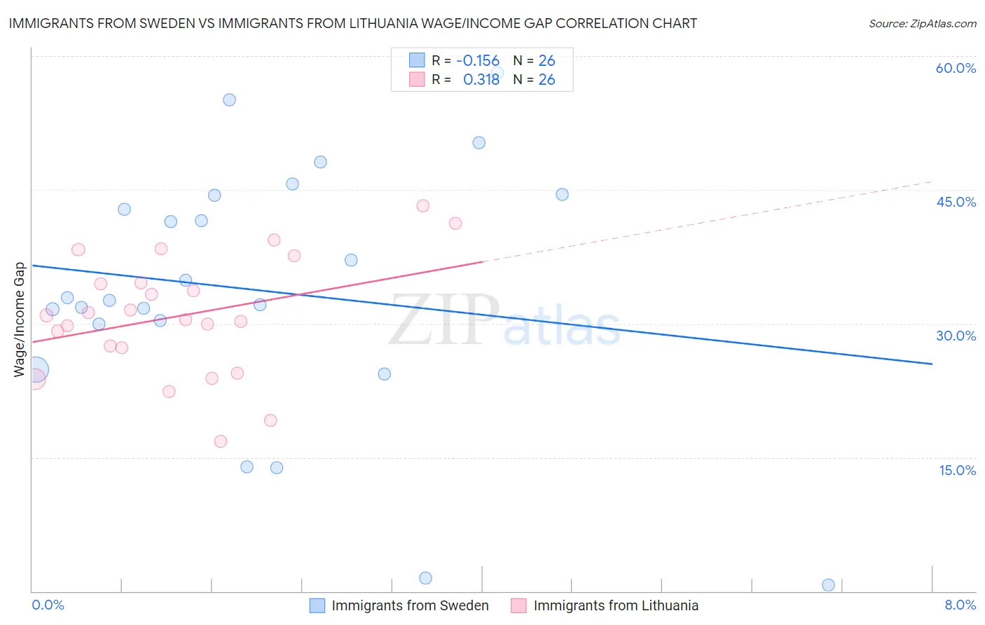 Immigrants from Sweden vs Immigrants from Lithuania Wage/Income Gap Correlation Chart