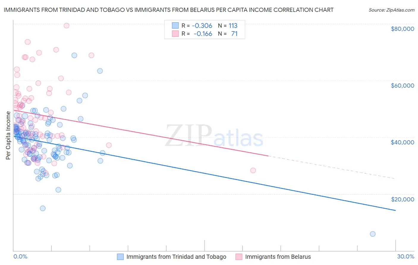 Immigrants from Trinidad and Tobago vs Immigrants from Belarus Per Capita Income Correlation Chart