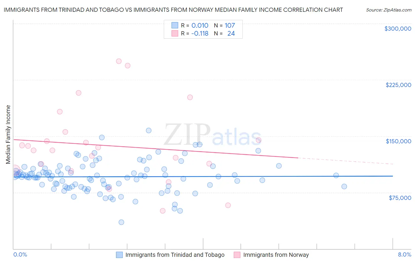 Immigrants from Trinidad and Tobago vs Immigrants from Norway Median Family Income Correlation Chart