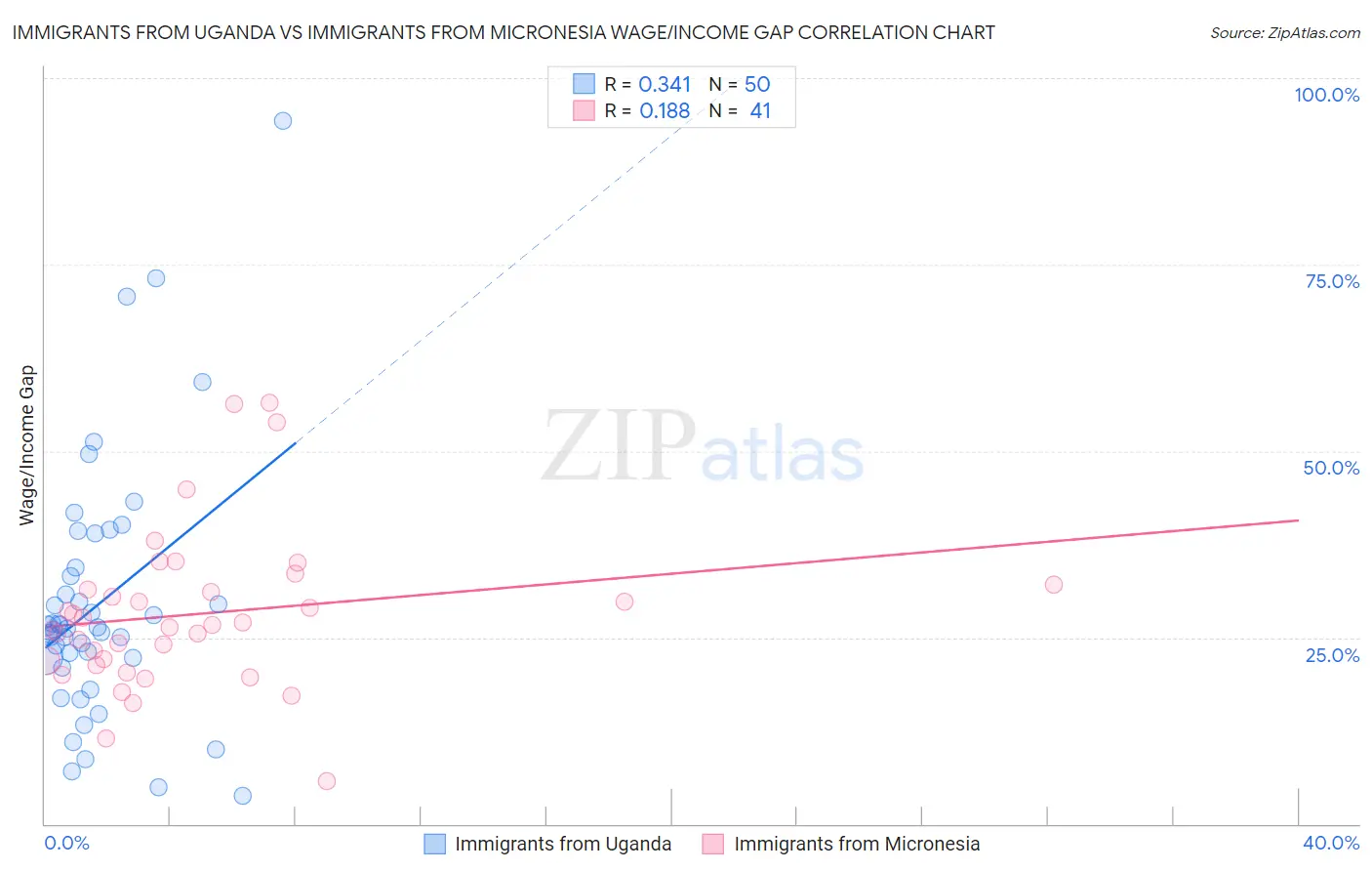 Immigrants from Uganda vs Immigrants from Micronesia Wage/Income Gap Correlation Chart