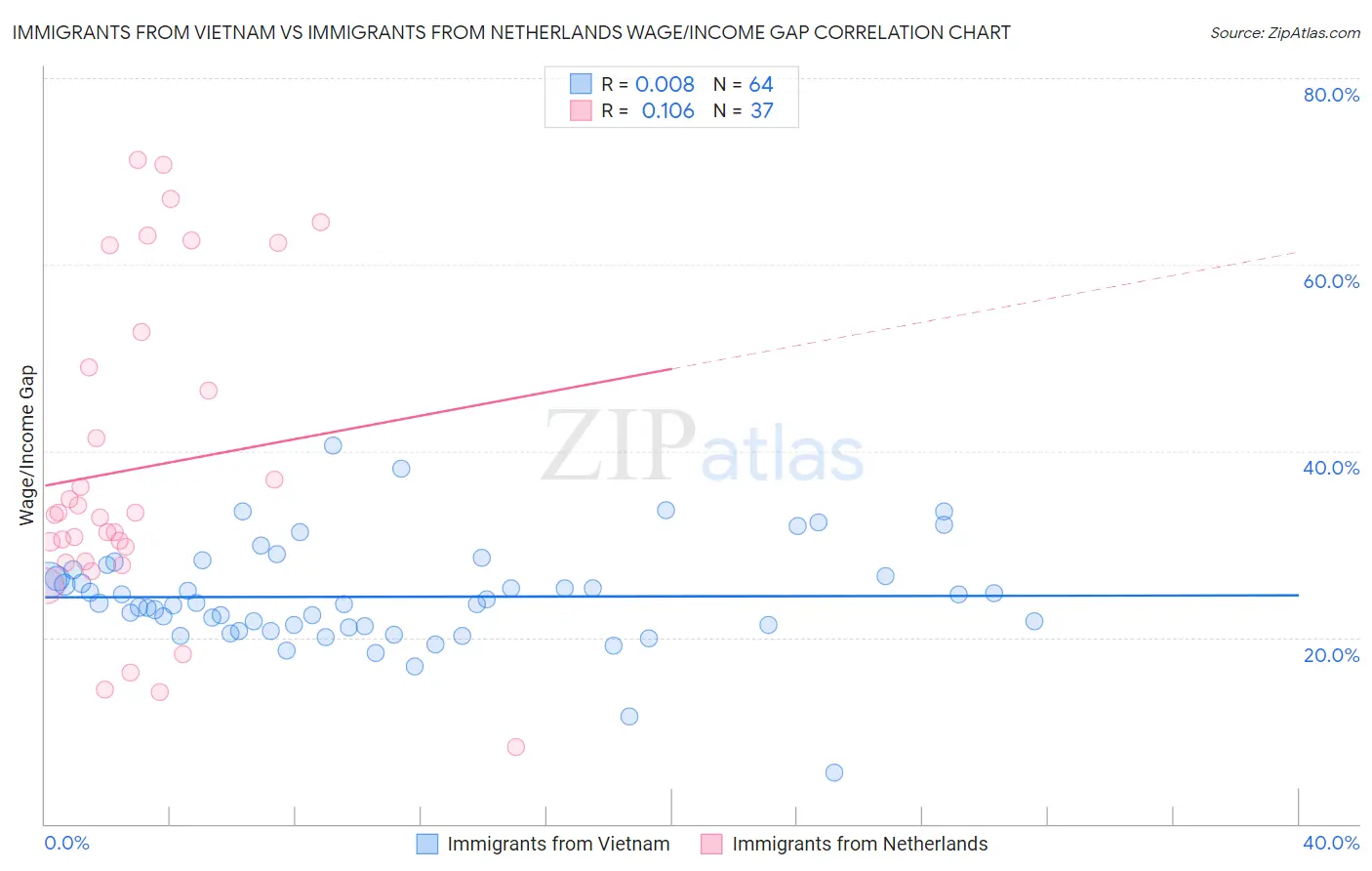 Immigrants from Vietnam vs Immigrants from Netherlands Wage/Income Gap Correlation Chart