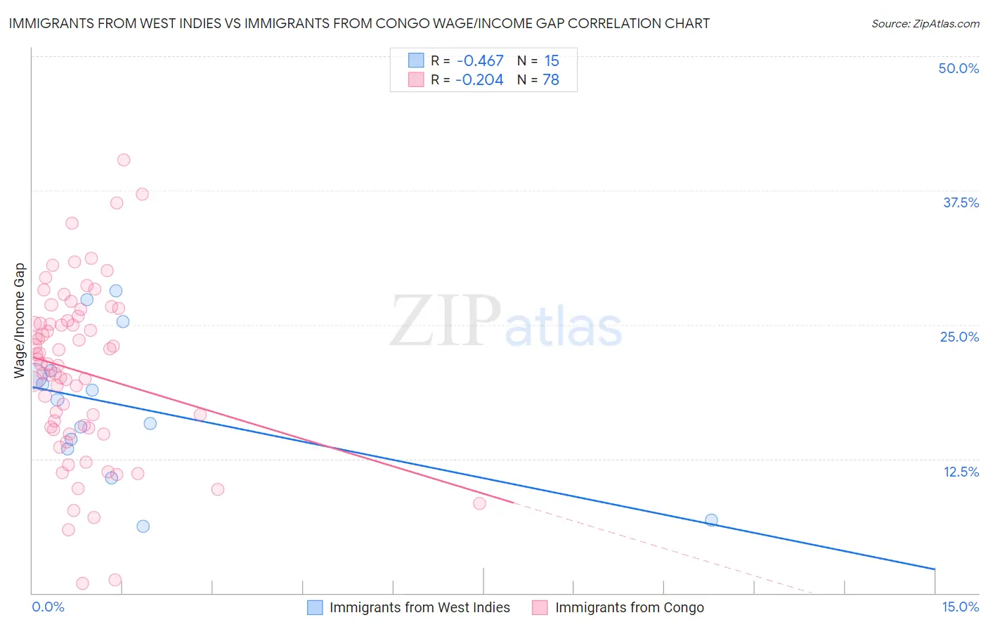 Immigrants from West Indies vs Immigrants from Congo Wage/Income Gap Correlation Chart