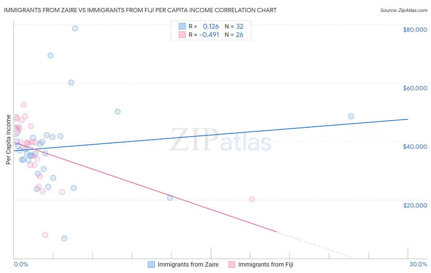 Immigrants from Zaire vs Immigrants from Fiji Per Capita Income Correlation Chart