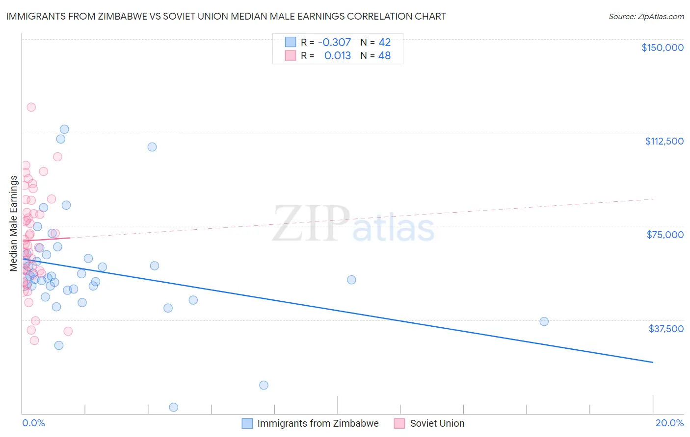 Immigrants from Zimbabwe vs Soviet Union Median Male Earnings Correlation Chart