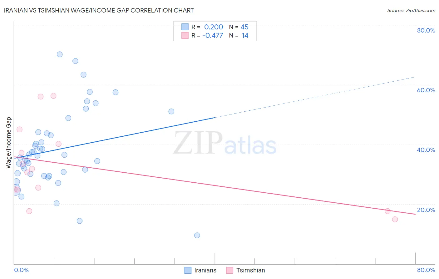 Iranian vs Tsimshian Wage/Income Gap Correlation Chart