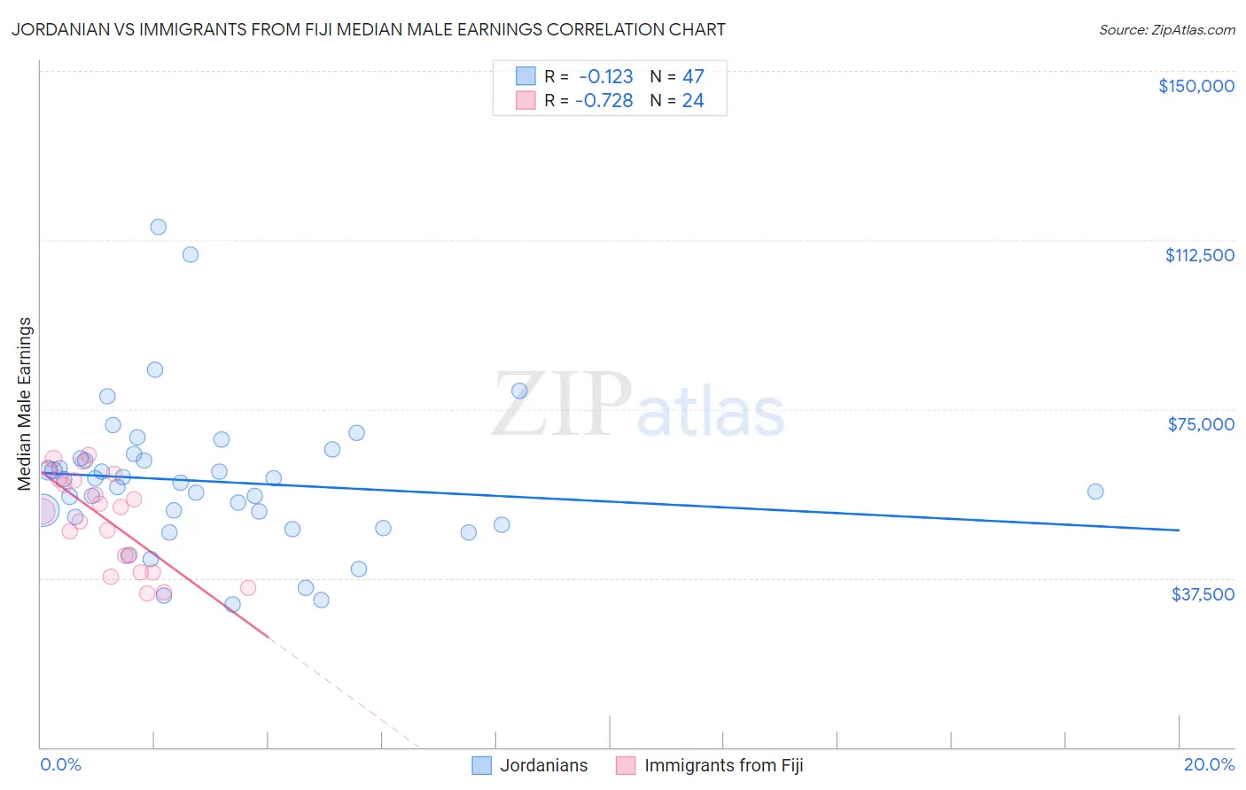 Jordanian vs Immigrants from Fiji Median Male Earnings Correlation Chart