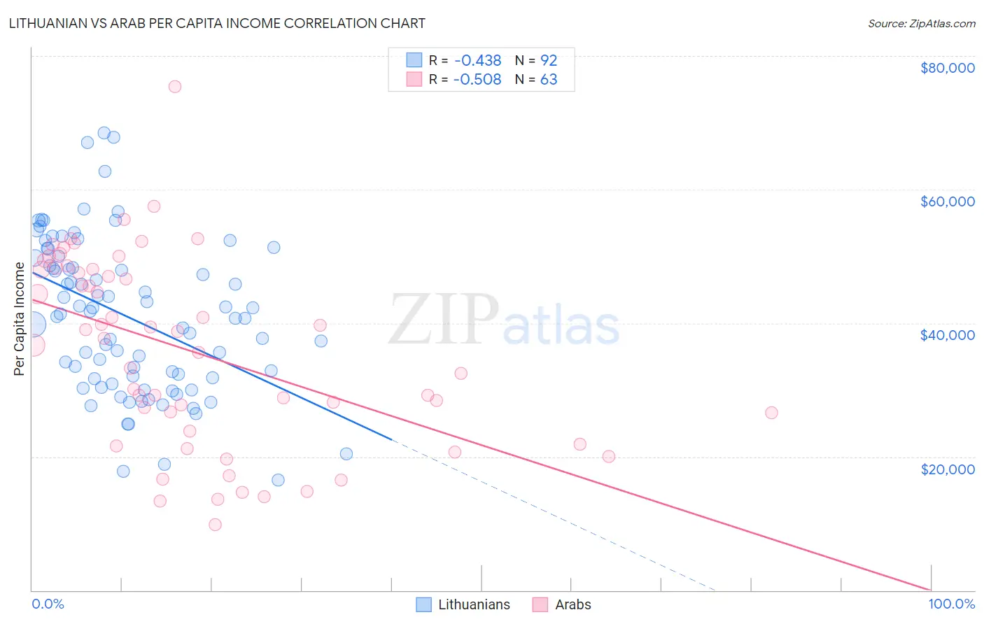 Lithuanian vs Arab Per Capita Income Correlation Chart