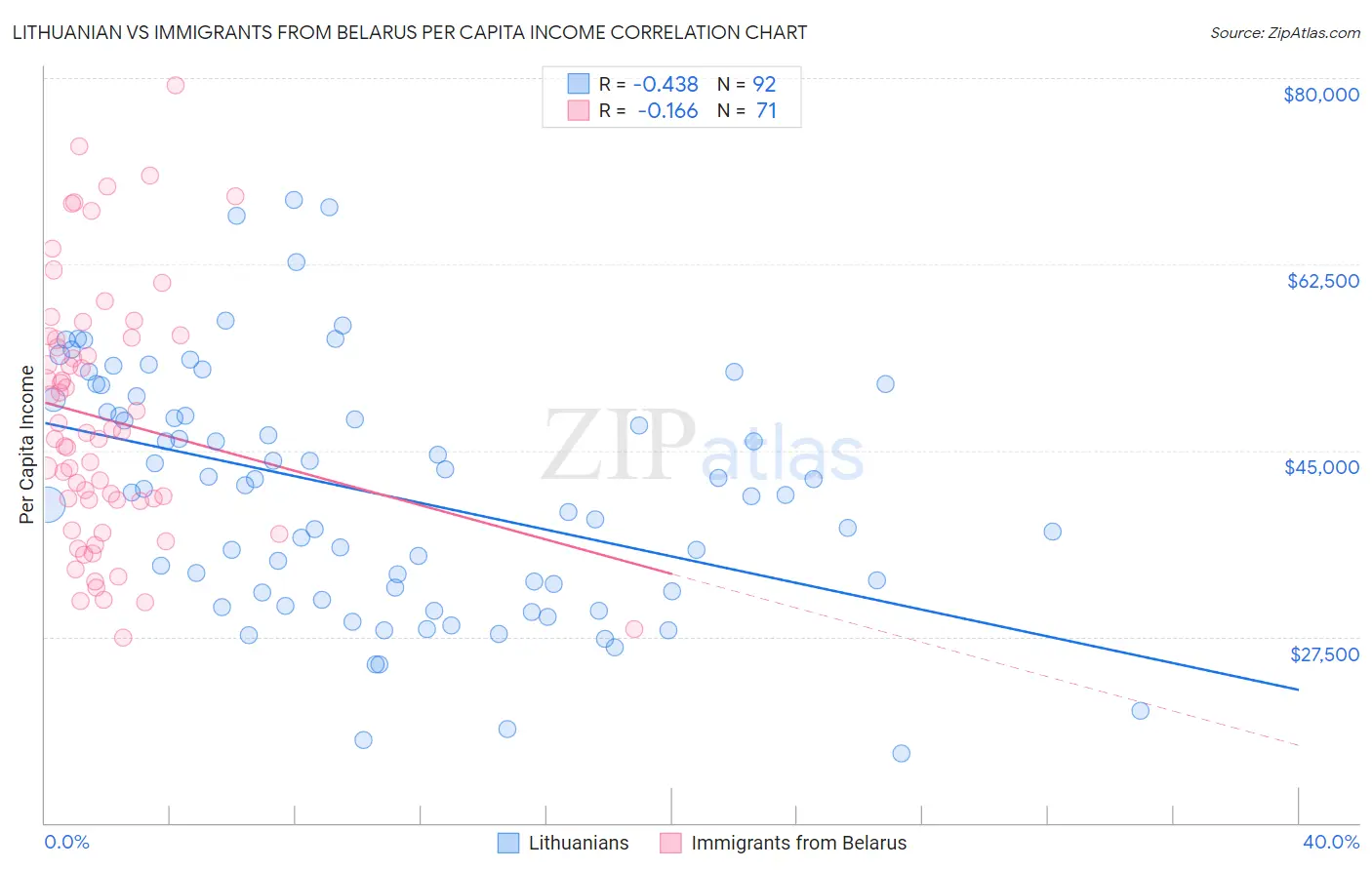 Lithuanian vs Immigrants from Belarus Per Capita Income Correlation Chart
