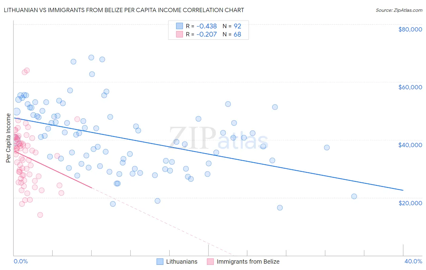 Lithuanian vs Immigrants from Belize Per Capita Income Correlation Chart