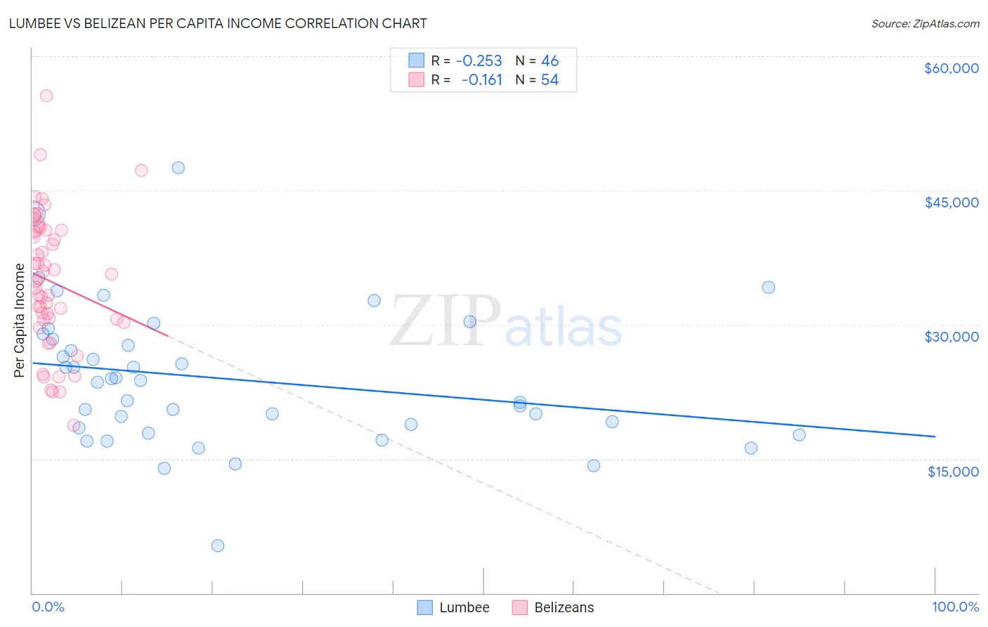 Lumbee vs Belizean Per Capita Income Correlation Chart