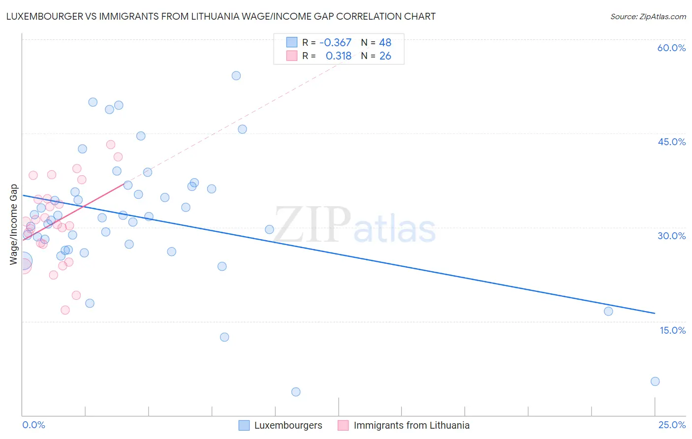 Luxembourger vs Immigrants from Lithuania Wage/Income Gap Correlation Chart
