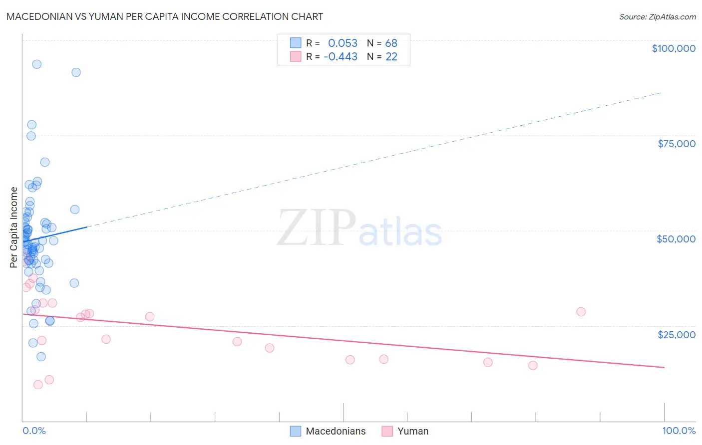 Macedonian vs Yuman Per Capita Income Correlation Chart