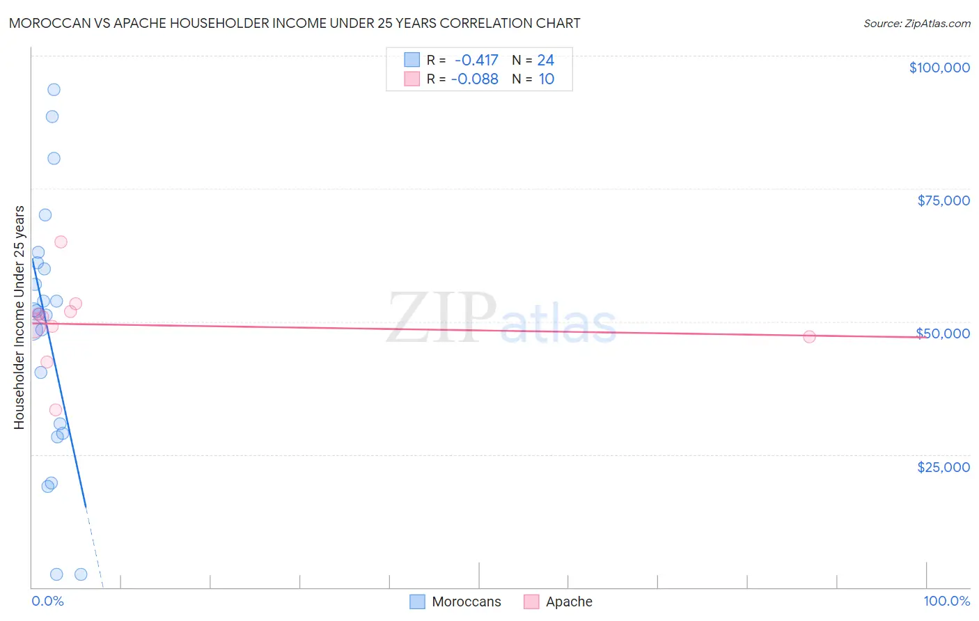 Moroccan vs Apache Householder Income Under 25 years Correlation Chart