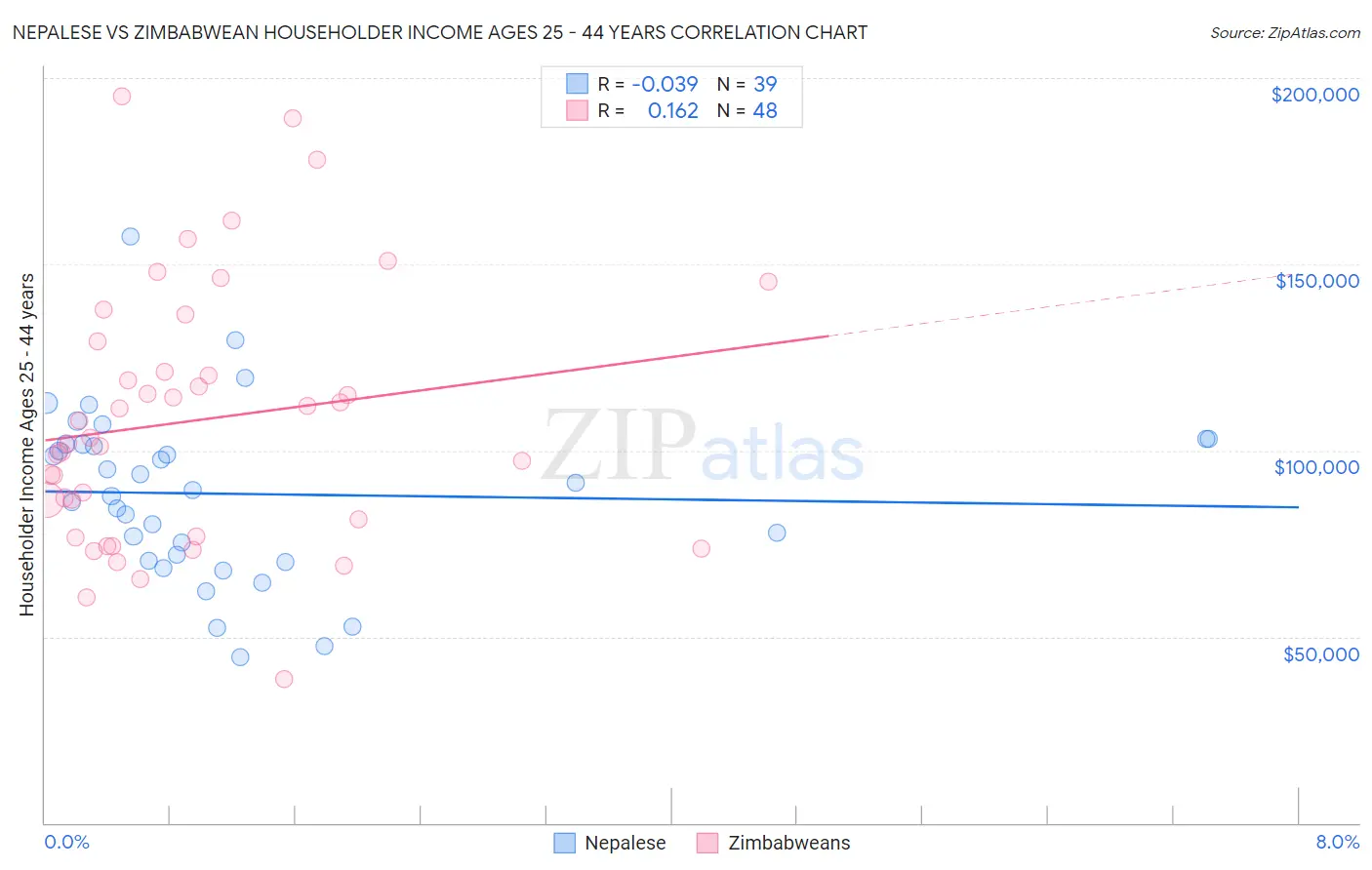 Nepalese vs Zimbabwean Householder Income Ages 25 - 44 years Correlation Chart