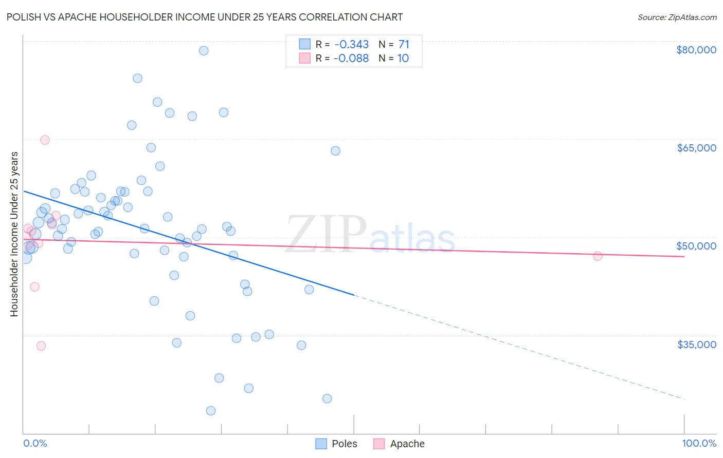 Polish vs Apache Householder Income Under 25 years Correlation Chart