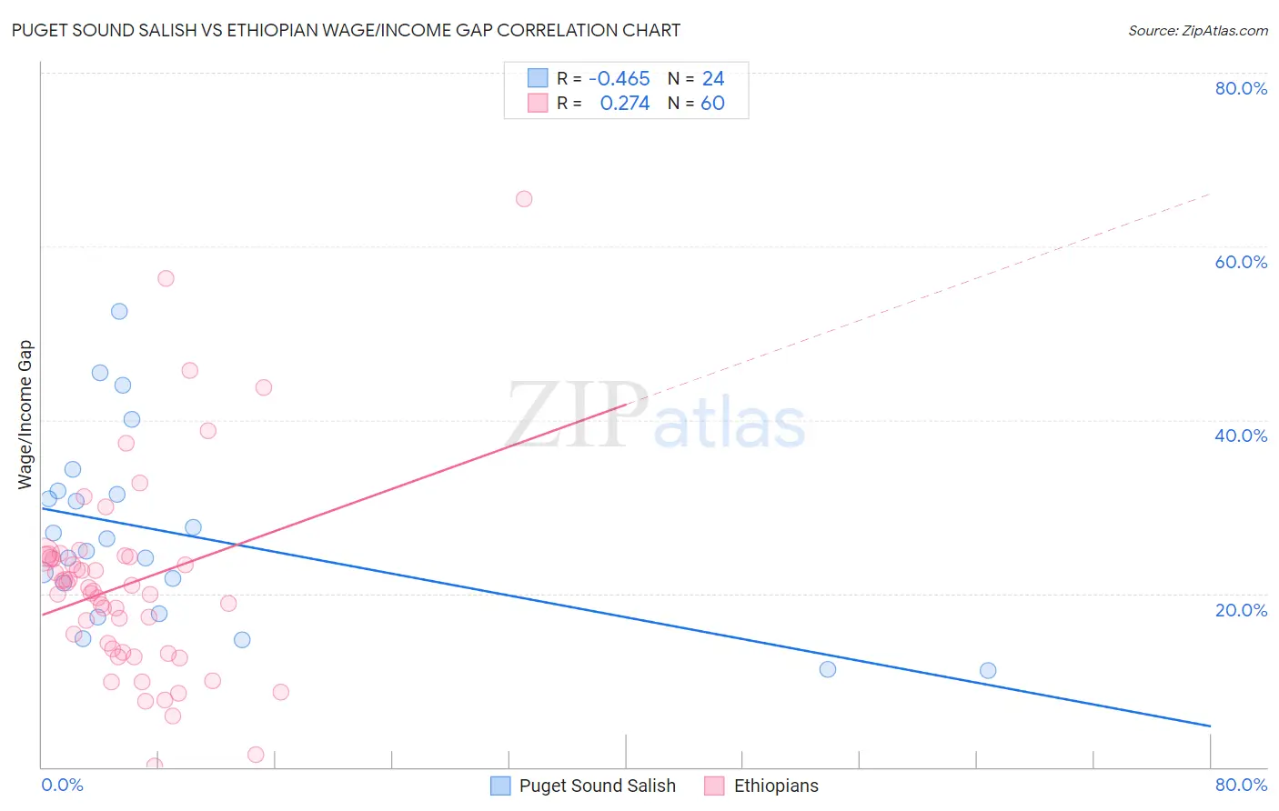 Puget Sound Salish vs Ethiopian Wage/Income Gap Correlation Chart