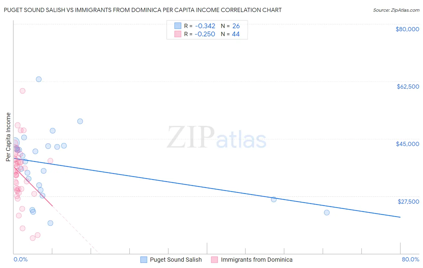 Puget Sound Salish vs Immigrants from Dominica Per Capita Income Correlation Chart