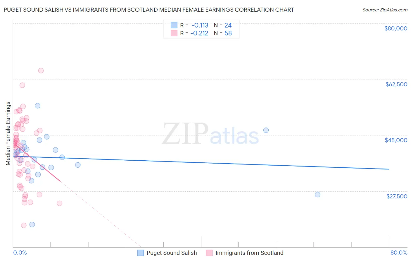 Puget Sound Salish vs Immigrants from Scotland Median Female Earnings