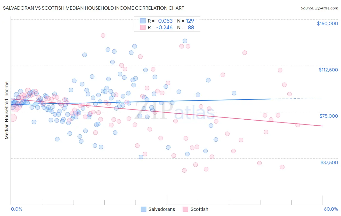 Salvadoran vs Scottish Median Household Income Correlation Chart